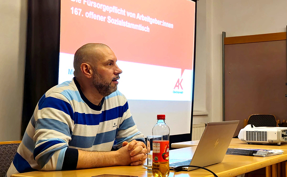 Am Donnerstag, 27. Februar fand der 167. offene Sozial-Stammtisch im Cardijn Haus in Linz statt. Roland Spreitzer, Referent für Arbeitnehmer:innenschutz in der AK OÖ diskutierte mit den Teilnehmer:innen über die "Fürsorgepflicht des Arbeitgebers, der Arbeitgeberin".