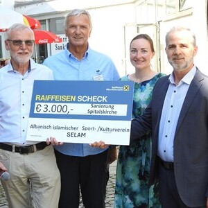 Ein schönes Miteinander der Religionen als Zeichen der friedlichen Verbundenheit zeigte der Verein SELAM - albanisch-islamischer Sport- und Kulturverein: Der Obmann Mifterem Eminhazari überreichte der Pfarrgemeinde einen Scheck in der Höhe von 3 000 € zur Sanierung der Spitalskirche. Die Verbindung unserer Kirche zum Verein SELAM besteht schon länger und geht zurück auf die Initiative von Hans Raab.